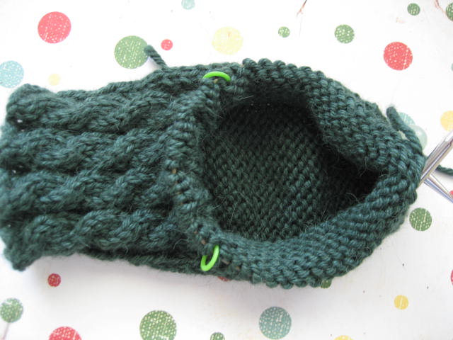 My Knit - I finished both pair of Cabled Footies that I was working on. This is the same pair; pictures taken at different times with different lighting. The pic on the right is closer to the actual color of Jade.